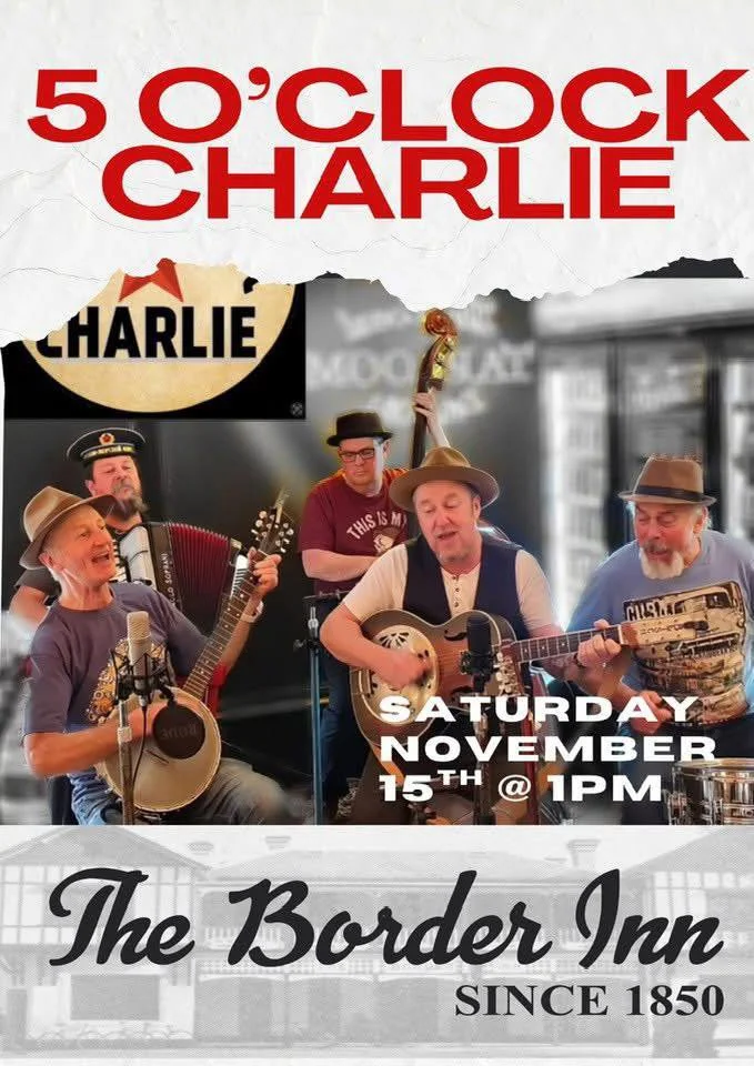 Don’t miss local heroes, Five O’Clock Charlie playing live at the Border Inn, with a special show for the Strawberry and Cherry Festival.