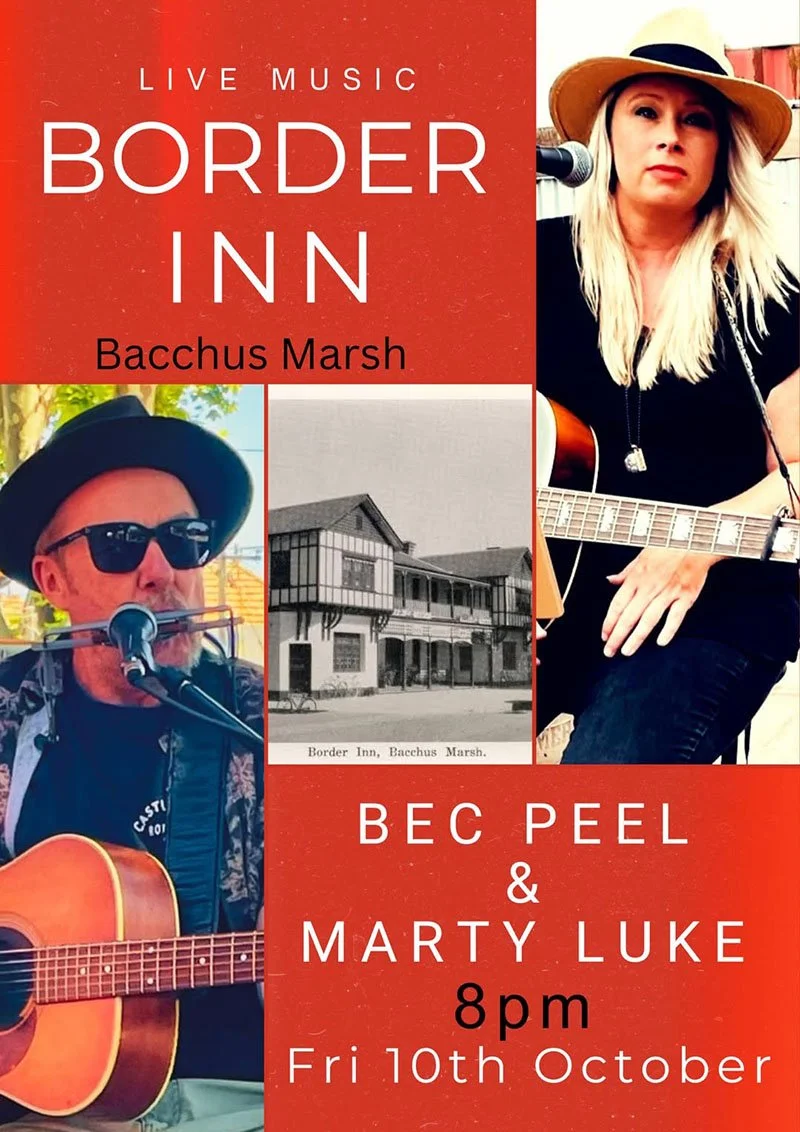 Join the crew at the Border Inn, Bacchus Marsh, for live music from local covers duo, Bec Peel and Marty Luke.