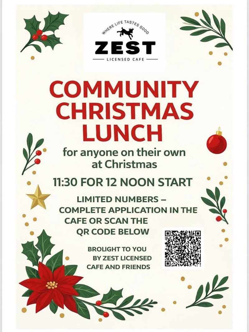 If you know someone who’ll be on their own this Christmas, or if that someone is you, Zest Licensed Cafe is opening its door for a warm and joyful community lunch.