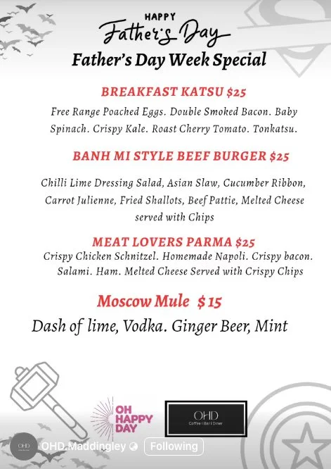 OHD is open for breakfast, brunch, lunch and dinner, with multiple sittings throughout the day and a host of fantastic Father’s Day specials.