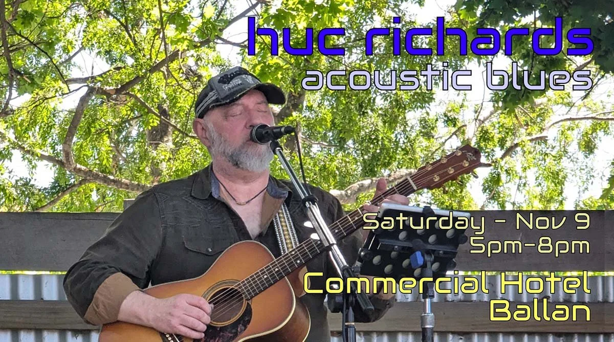 Get ready for an evening of brews and acoustic blues with singer/guitarist Huc Richards at Ballan’s Commercial Hotel.