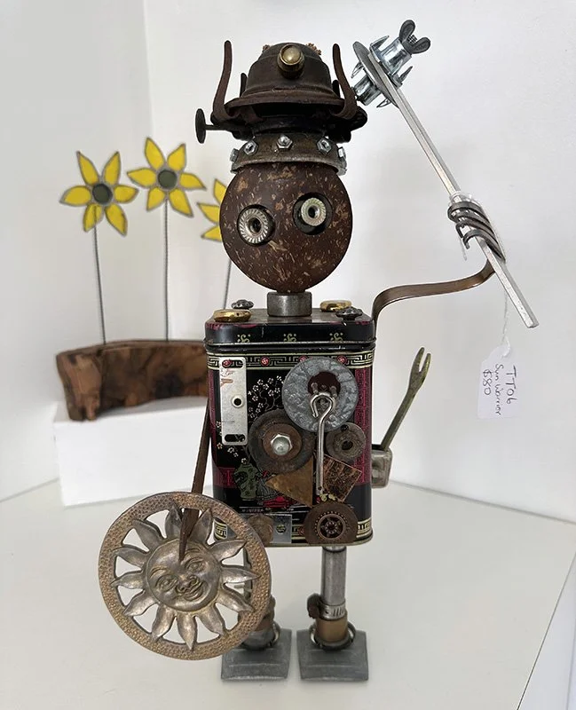 Fathers’ Day is also coming up fast so pop into the gallery for some crazy bargains like this Sun God mechanical sculpture by local artist Tracey Taylor.